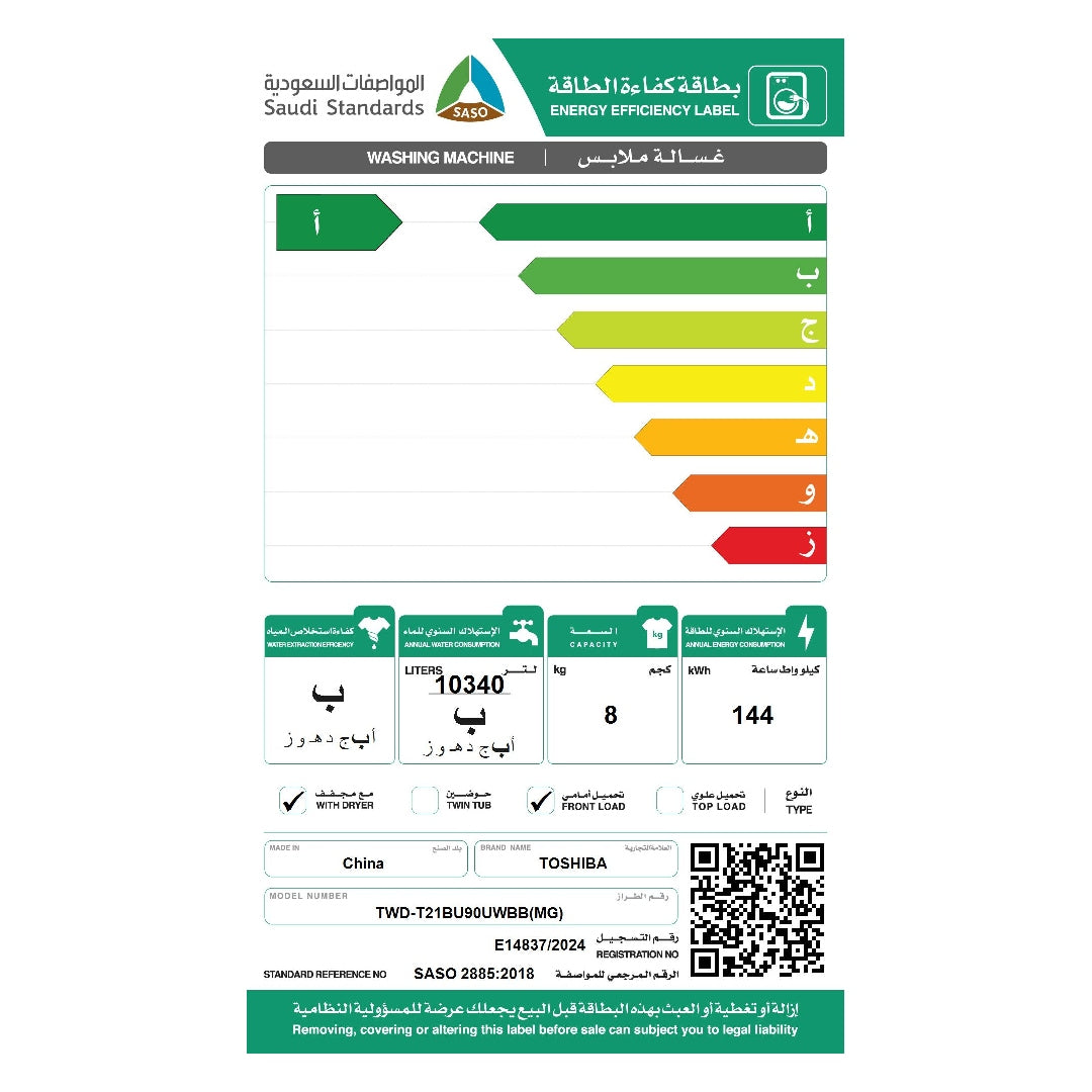 وفّر المساحة دون المساومة على الأداء مع غسالة ومجفف Toshiba T21. يوفر هذا الجهاز متعدد الاستخدامات سعة غسيل 8 كجم وسعة تجفيف 6 كجم، مما يجعله الحل المثالي المتكامل للعناية بالملابس.تتميز بتقنية GreatSteam التي تستخدم البخار الساخن لتعقيم الملابس وإزالة الروائح، مع تحقيق نسبة تعقيم تصل إلى 99.99%. كما يعمل مولد Ultra Fine Bubble جنبًا إلى جنب مع محرك Origin Inverter لتوفير تنظيف عميق وموفر للطاقة في كل مرة.ذكية وأنيقة وهادئة، ومصممة للتعامل مع جميع أنواع الأقمشة، من الصوف الحساس إلى الأغطية الثقيلة.