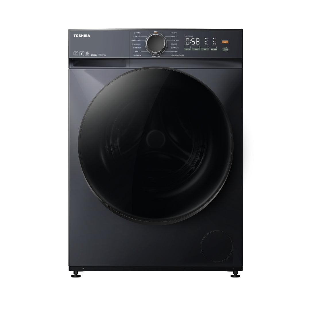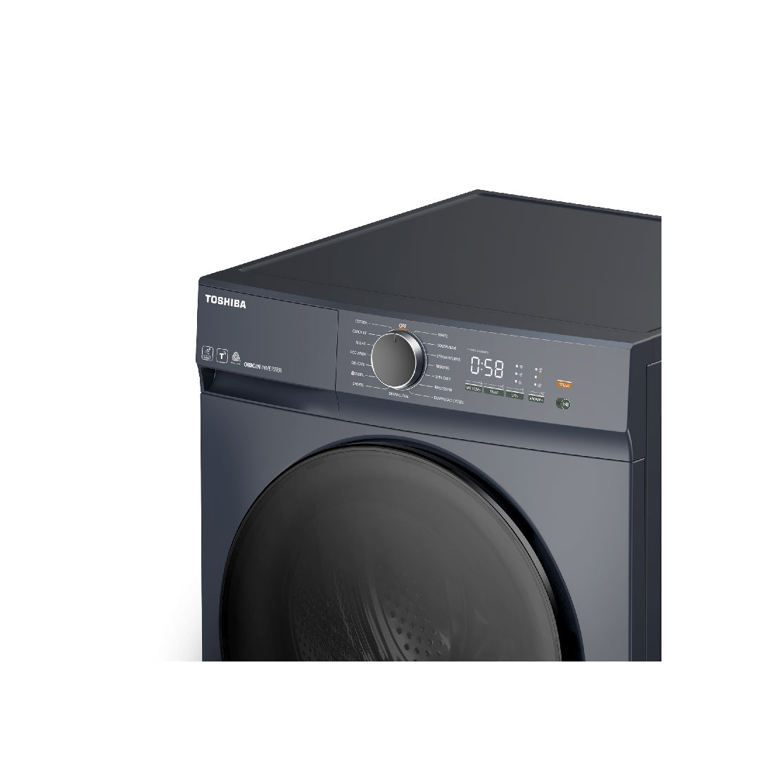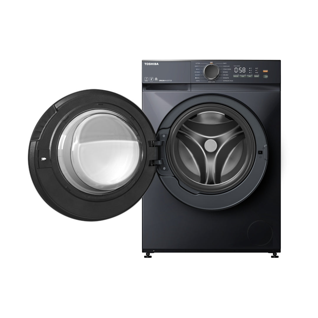 غسالة توشيبا تحميل أمامي 9 كجم مع تقنية الفقاعات فائقة الدقة Ultra Fine Bubble ومحرك Origin Inverter – لون موراندي رمادي